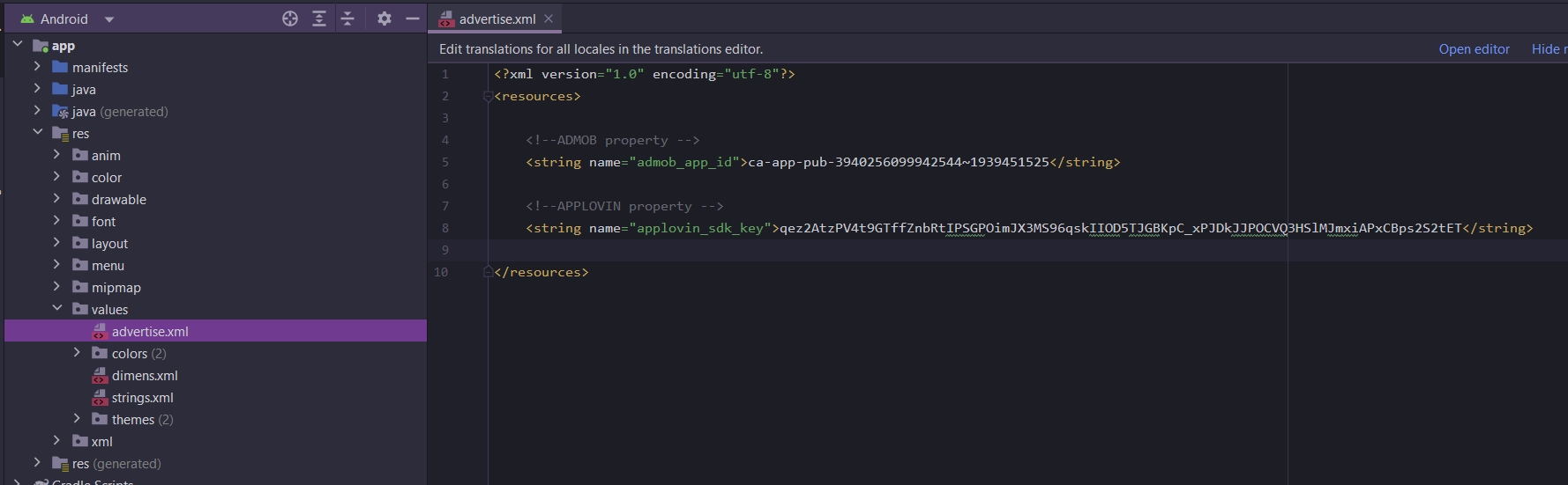 From this file you can change default ad network, unit id, interval interstitial, and disable or enable ad.